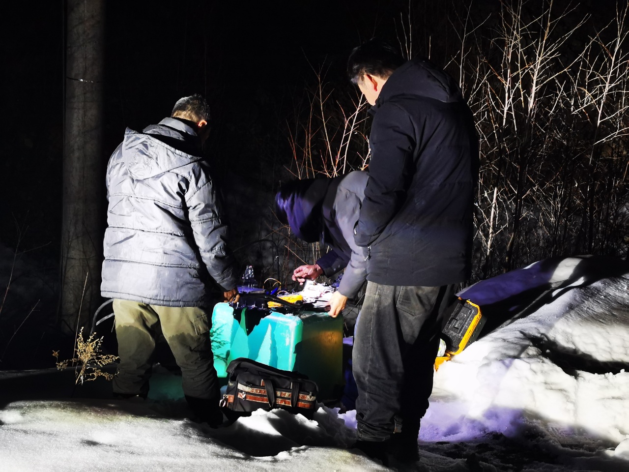 彼时,夜间气温低至零下20几度,寒风呼啸,天寒地冻,为尽快恢复通信,抢修队员们不畏严寒,在光线昏暗的恶劣环境下连夜奋战,手脚冻僵也仍不停歇。经过连续数小时的作业,两处48芯光缆终于在当晚21时许全部熔接完毕,所有受阻业务恢复正常。